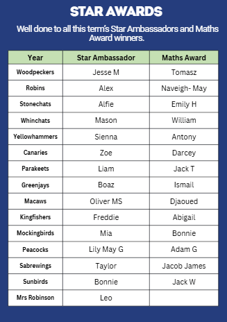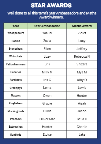 Summer 2025 - Star Ambassador and Maths Award