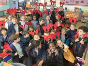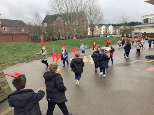 On Friday 6th February the whole school took part in the Reindeer Run to raise money for Thames Hospice. Despite the wet and muddy conditions, everyone enjoyed taking part in this annual event to raise money for charity. Children completed laps of the field, with the older children supporting the younger ones on the way round, as well as showing team spirit and cheering each other on.